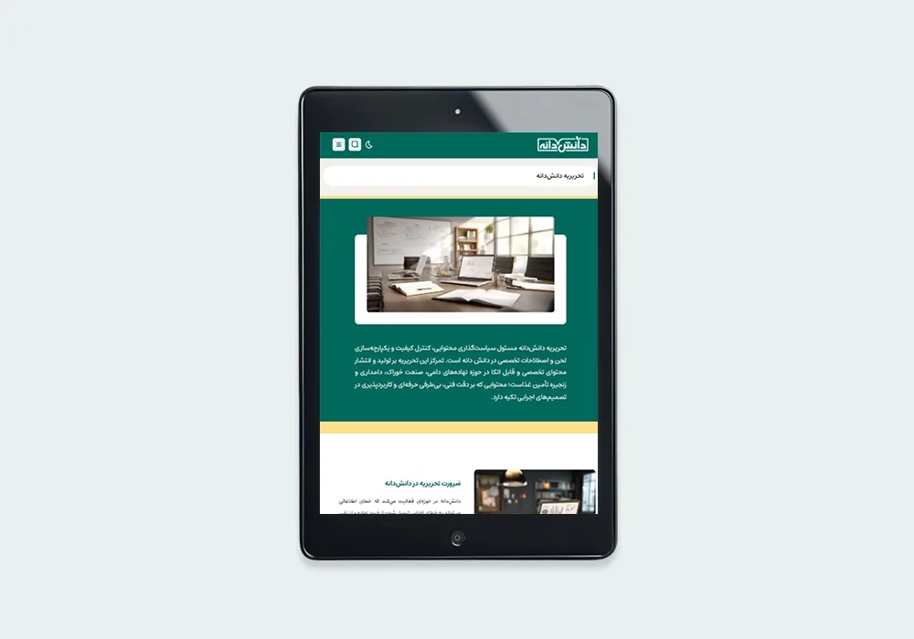 وقتی یک سایت «تخصصی» است، طراحی باید تخصص را در رفتار سایت نشان دهد: نظم، مسیر، طبقهبندی و قابلیت بازگشت به منبع. دانشدانه بهجای اینکه کاربر را در حجم مقالهها رها کند، تلاش کرده در هر مرحله به او بگوید «کجا هستی» و «قدم بعدی چیست».