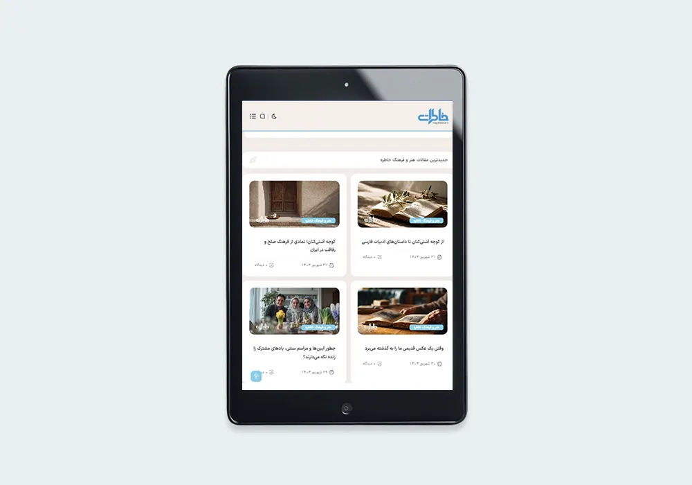 ROMET در این بخش از خدمات طراحی وبسایت تخصصی و طراحی UX/UI بر پایه برندینگ بهره گرفت تا سایت مجله خاطرات نهتنها کاربردی باشد، بلکه حس و حال منحصربهفردی منتقل کند.