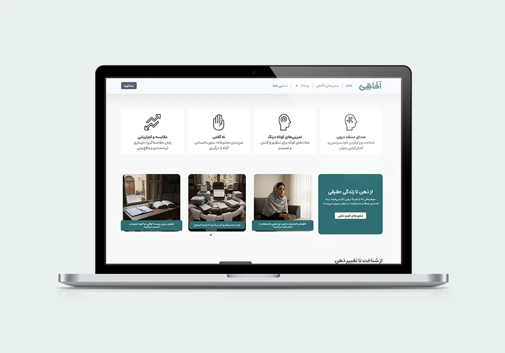 این ایده، باعث شده طراحی سایت بهسمت سادگی، آرامش بصری و پرهیز از شلوغی حرکت کند. در اینجا خبری از المانهای تهاجمی، رنگهای تند یا فراخوانهای پرسروصدا نیست. طراحی، عمداً عقب میایستد تا محتوا و معنا جلو بیایند.